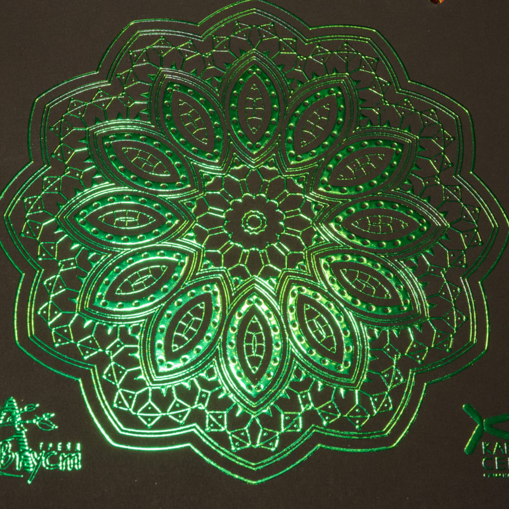 - гарячого тиснення фольгою IFOIL-S (золото, срібло, червоний, синій, мідний, чорний, бірюзовий, голографія, «друк» по фользі вибірковим лаком чи іншою фольгою);